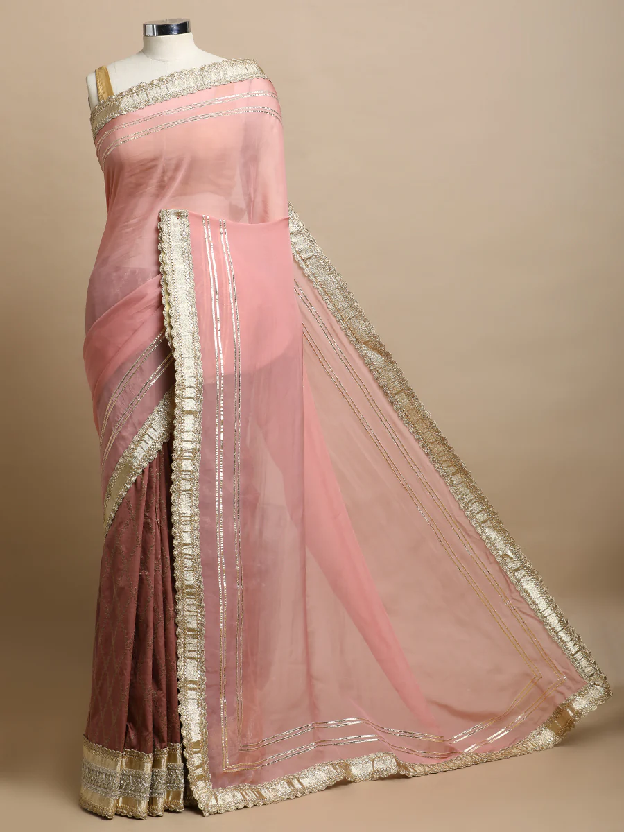 Ahalya x Tyohaar | Mauve & Pink Vine Mesh Brocade Saree With Heavy Zari Designer Lace