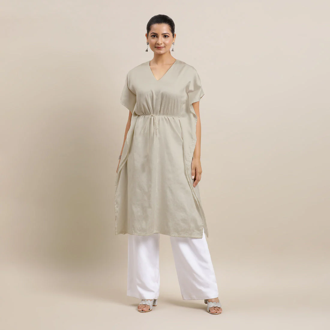 Siya x Rozaana | Kaftan Kurta in Oyster Grey with Thread Work | Coords or Only Kurta