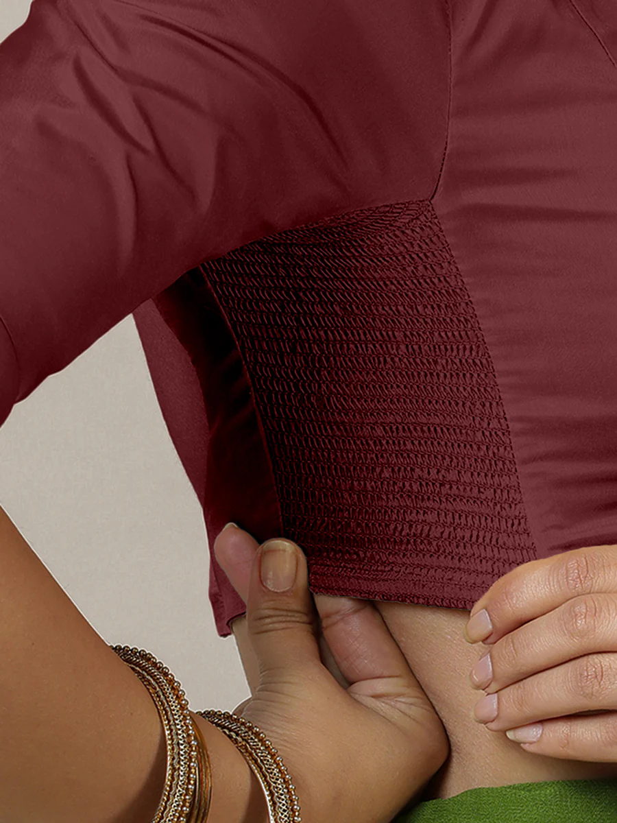 Myra x Rozaana | Burgundy Backless Saree Blouse w/ FlexiFit™