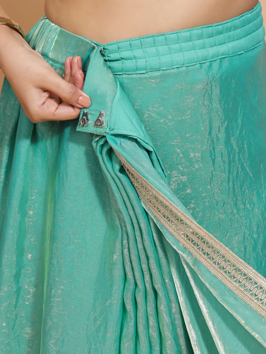 HomeStoreHelen x Tyohaar | Golden Green Tissue Saree with Ready-to-Wear Option